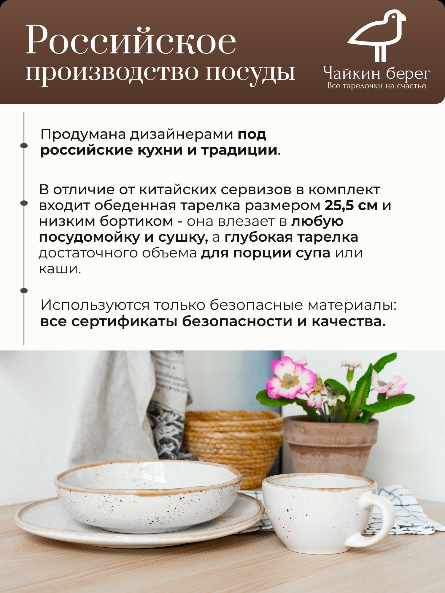 10 цен на Набор посуды столовой на 4 персоны с кружками, 12 предметов "Флоу", сервиз обеденный Пунто-Бьянка