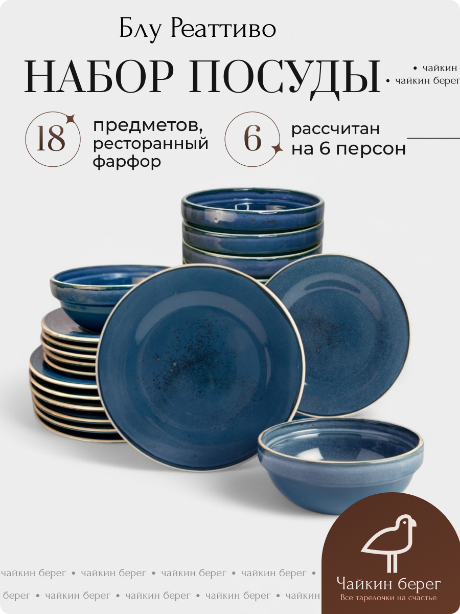 Отзывы на Набор посуды столовой на 6 персон, 18 предметов "Блу Реаттиво", фарфор, сервиз обеденный, цвет синий