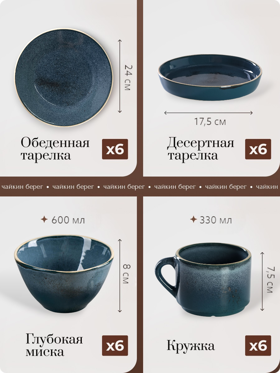 Отзывы на Набор посуды столовой на 6 персон с кружками, 24 предмета "Бордер", фарфор, сервиз обеденный Блу Реаттиво