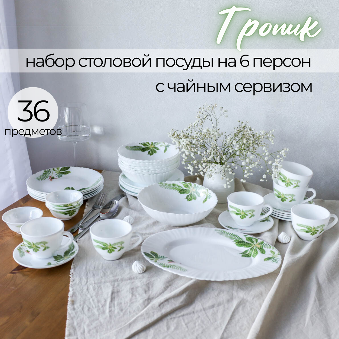 10 цен на Набор столовой посуды с чайным сервизом "Тропик" 36 предметов на 6 персон