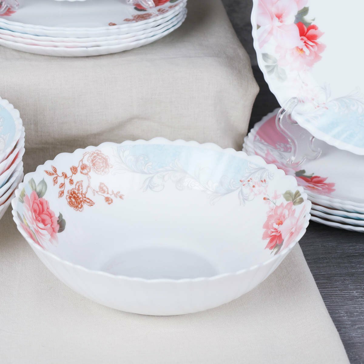 Салатник 480 мл 155 мм тарелка глубокая WHITE LILY "Кустовая роза" 6 штук