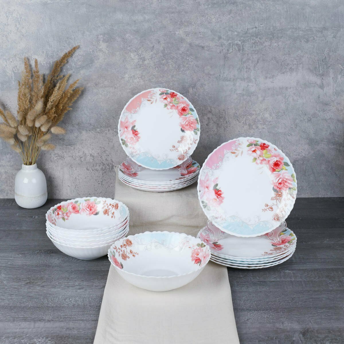 Набор столовой посуды 19 предметов "Розы на голубом" информация: