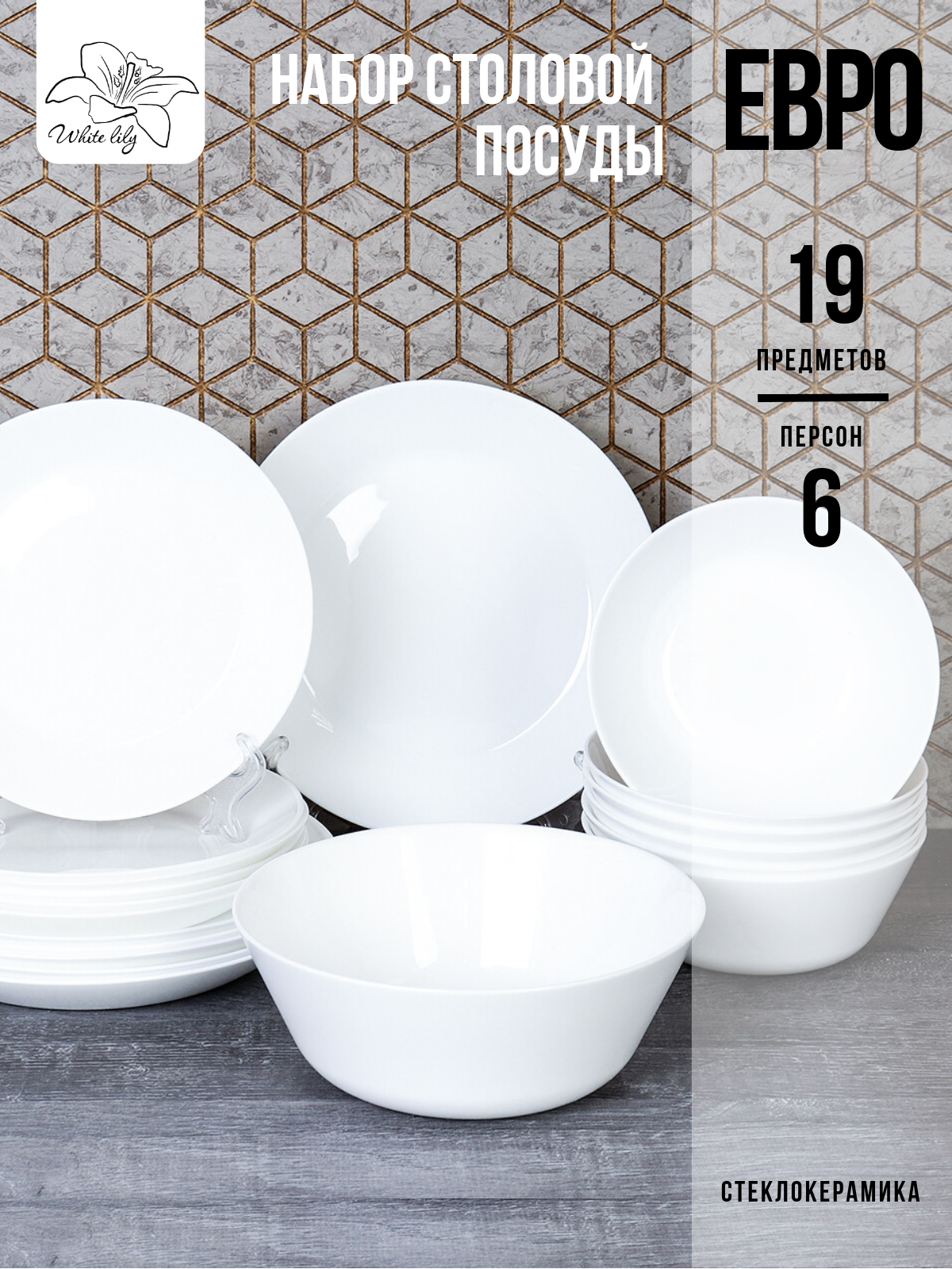 10 цен на Столовый набор Евро White - 19 предметов/6 персон