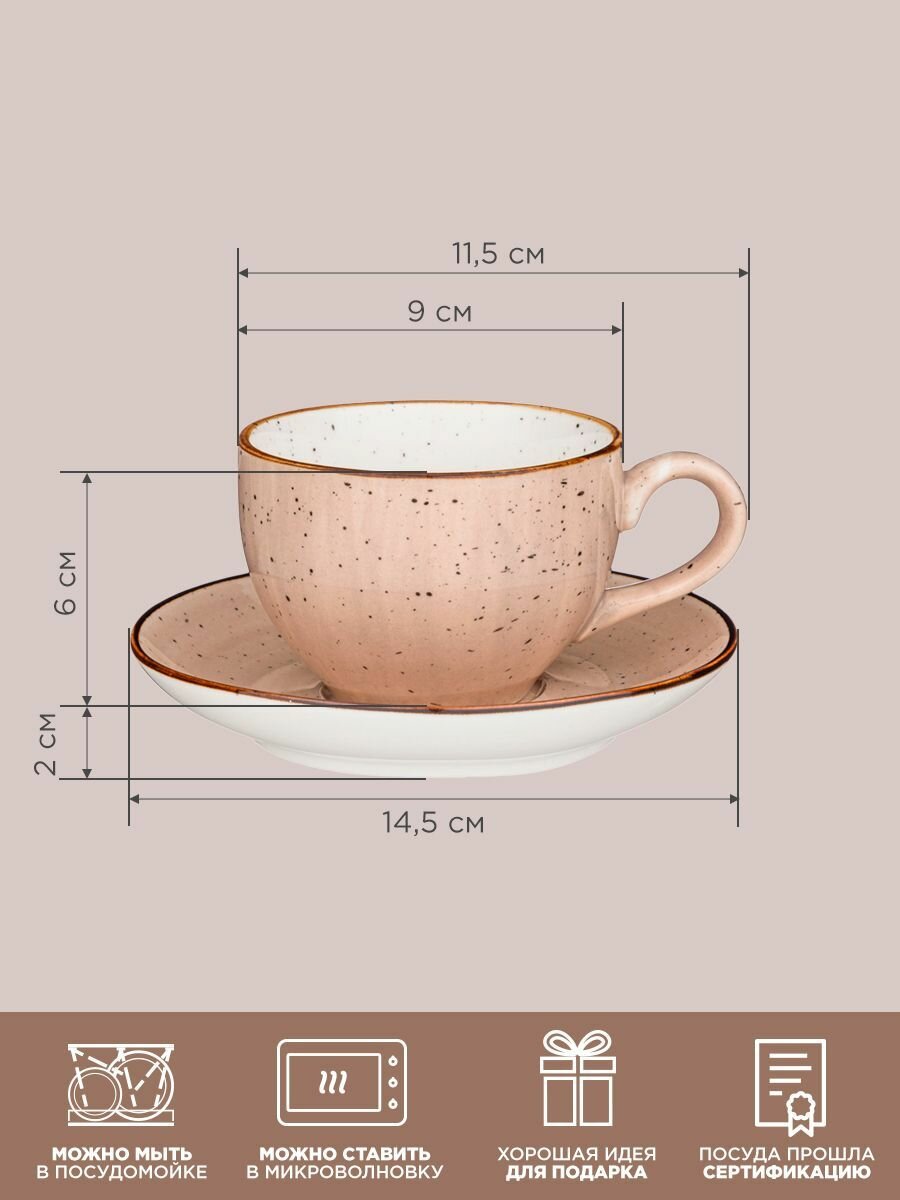 Чашки с блюдцем Bronco "Nature", на 2 персоны, 4 предмета, 220 мл, фарфор информация: