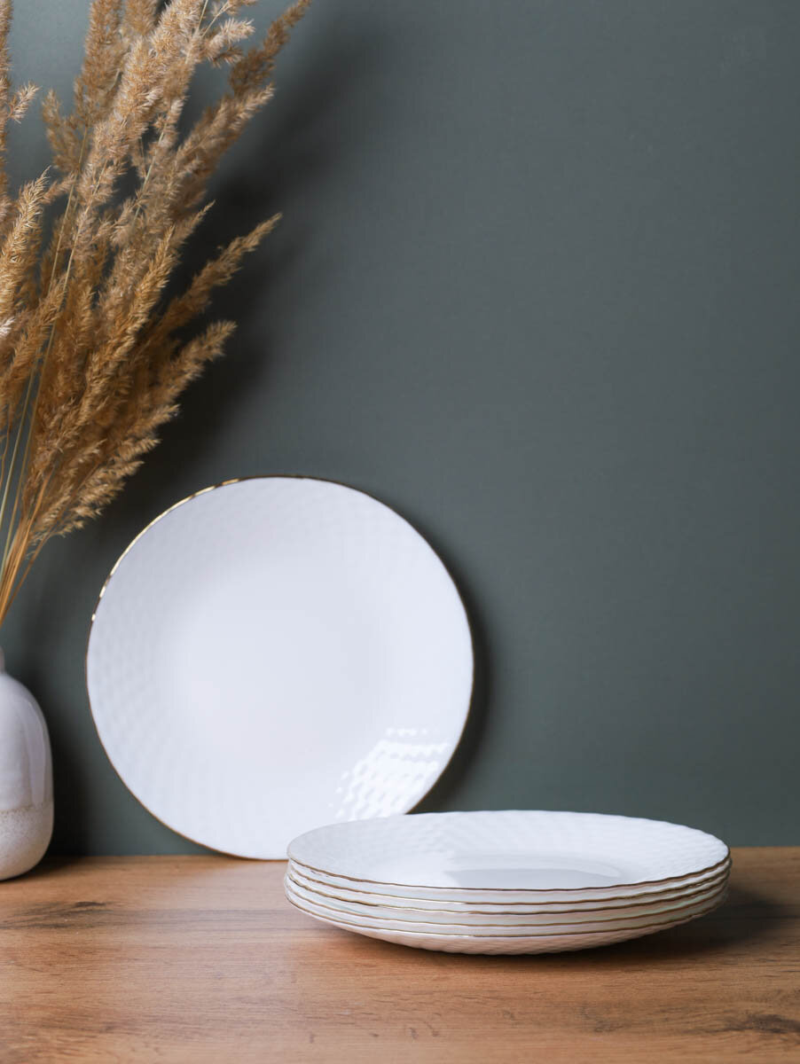 Отзывы на Столовый набор посуды 30 предметов/ Тарелки с чайным набором Фактурные белые с золотом