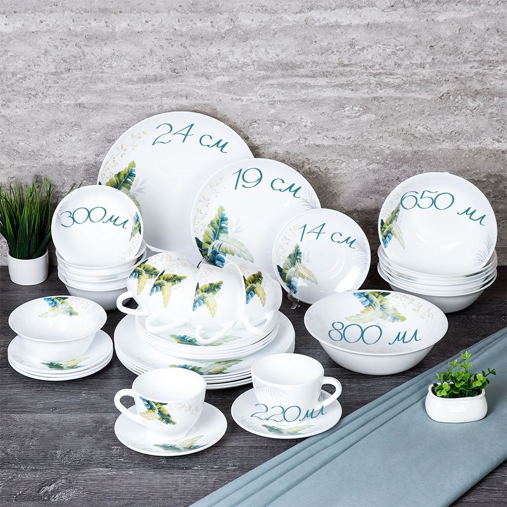 10 цен на Столовый сервиз White Lily "Папоротник", стеклокерамика, 37 предметов ЕВРО с чайным сервизом
