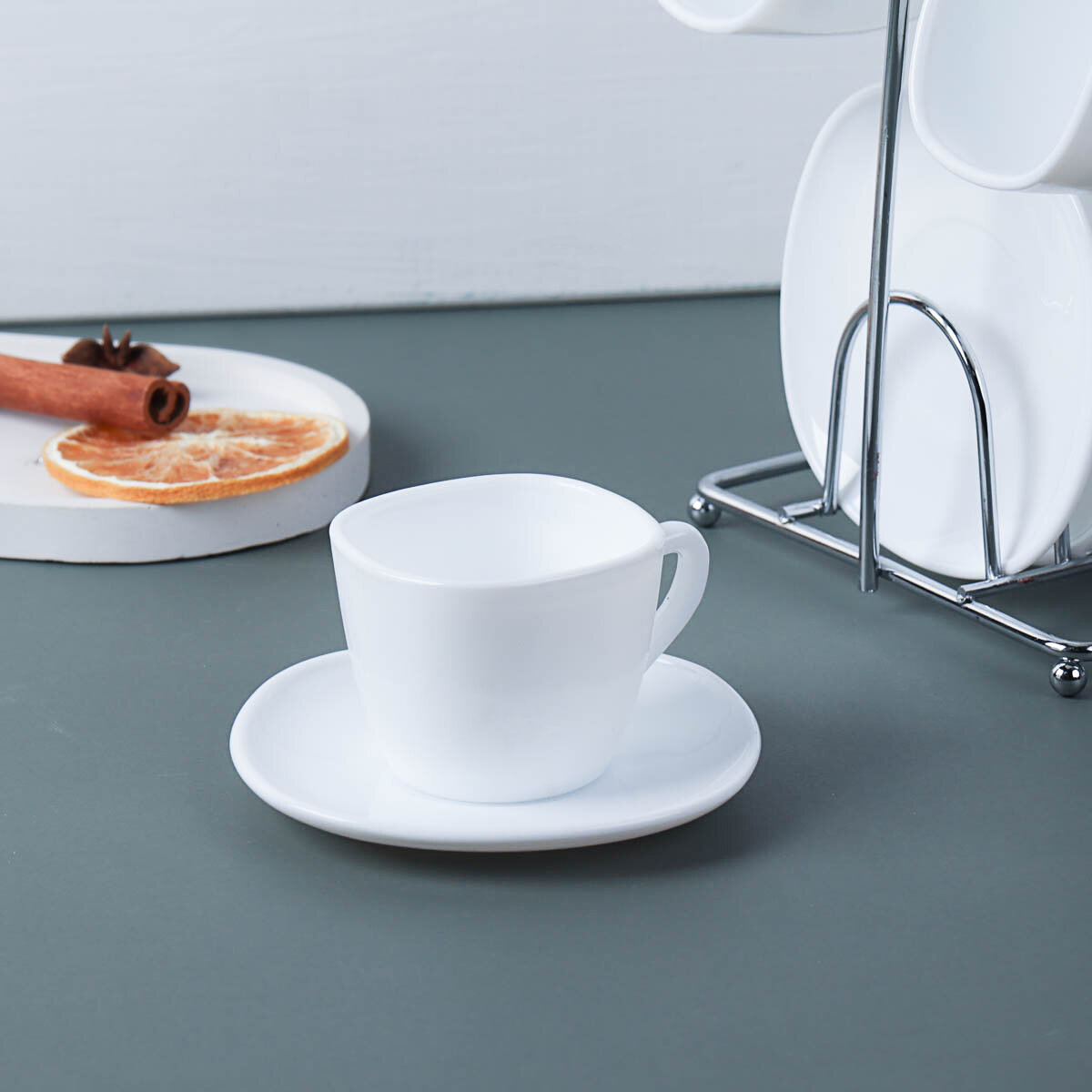 Кофейный набор "Белый квадрат" на 6 персон на подставке информация: