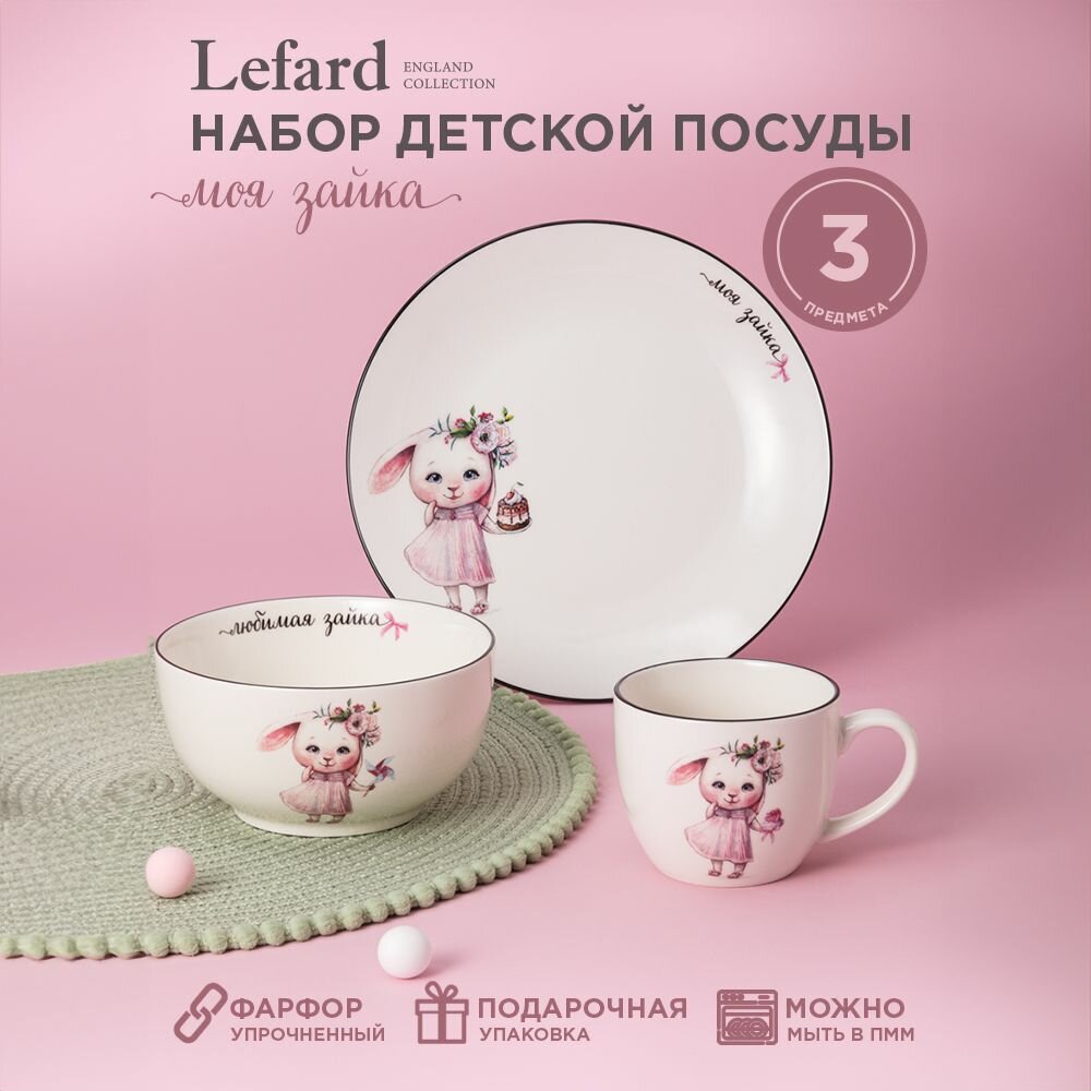 Сервиз Lefard "Моя зайка", набор детской посуды, фарфоровый, 3 предмета: салатник 470 мл, тарелка 20 см, кружка 220 мл информация: