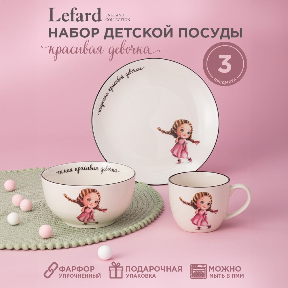 Сервиз Lefard "Красивая девочка", набор детской посуды, 3 предмета: салатник 470 мл, тарелка 20 см, кружка 220 мл информация: