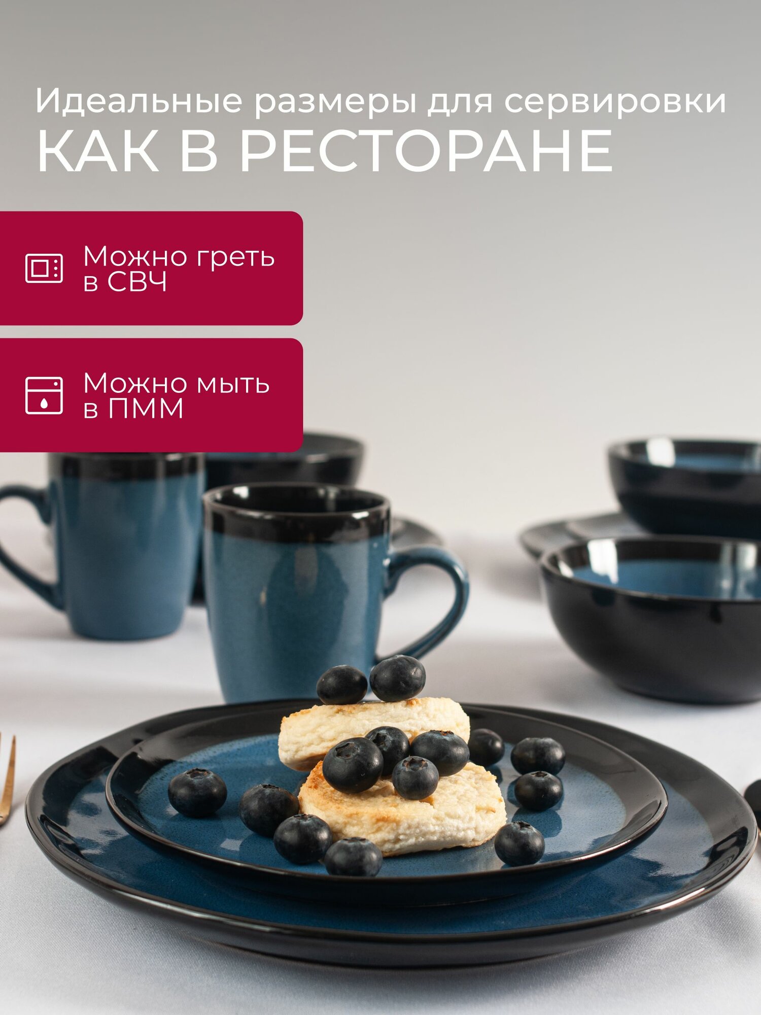 10 цен на Сервиз столовый "JEWEL Неон", керамика, для 4 персон, 16 предметов, синий/чёрный
