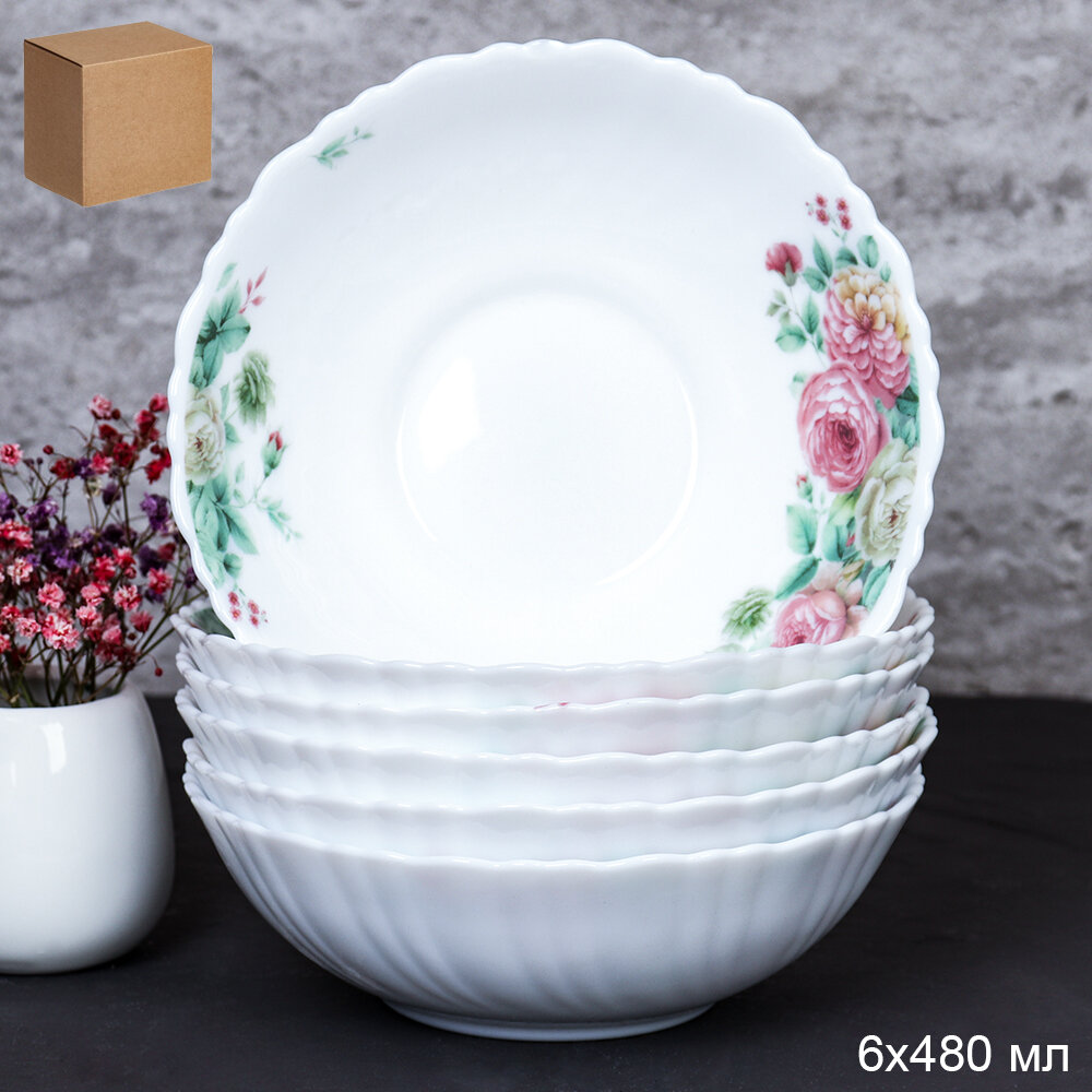 Салатник 480 мл 155 мм тарелка глубокая WHITE LILY "Кустовая роза" 6 штук