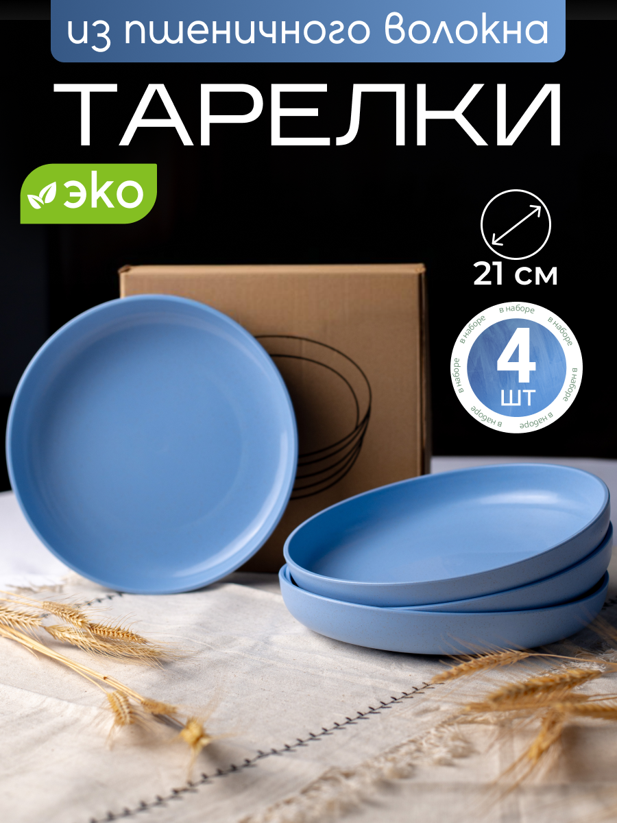Набор тарелок из пшеничной соломки Greenka, 4шт, диаметр 21см информация: