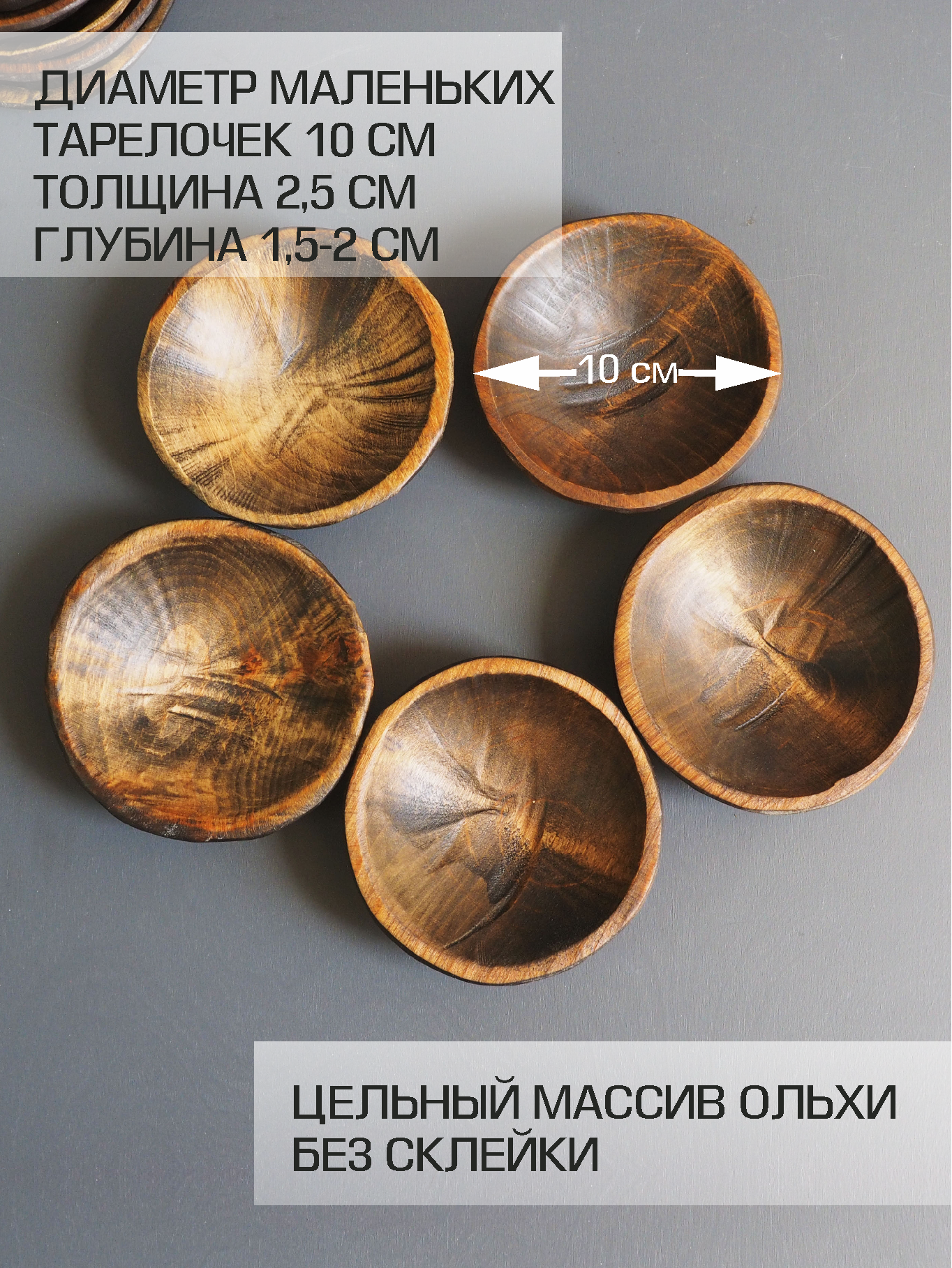 Набор из пяти маленьких деревянных тарелочек для сервировки и подачи информация: