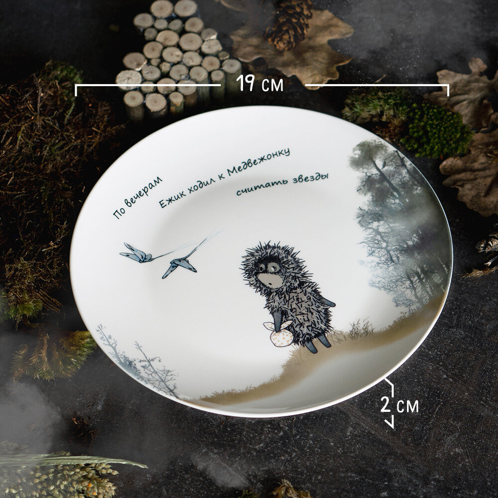 Тарелка десертная белая с принтом Ежик в тумане 19 см фарфор в подарочной упаковке информация: