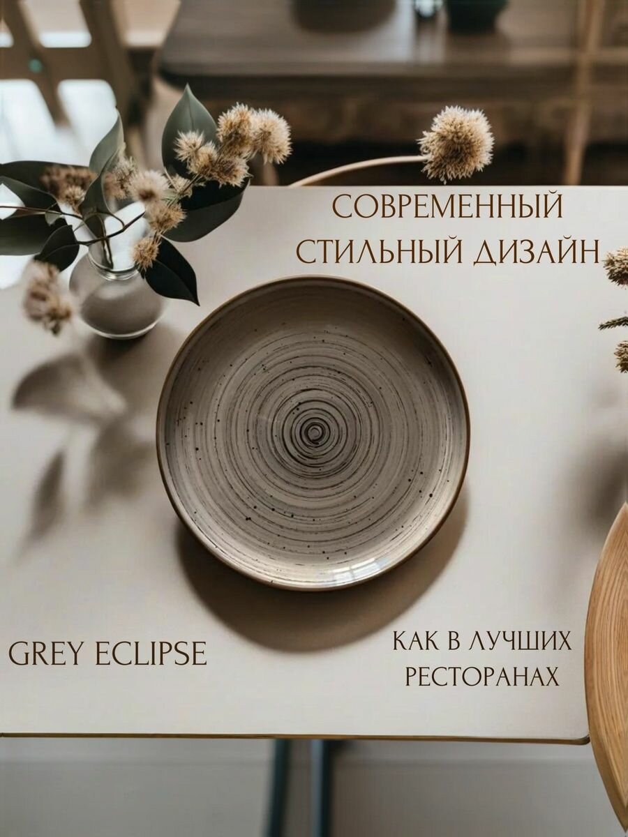 Керамическая круглая обеденная тарелка с бортиком Grey Eclipse 20 см информация: