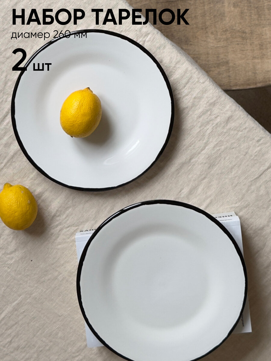 Отзывы на Набор тарелок фарфор 2 шт диаметр 260 мм, тарелки с черной каймой