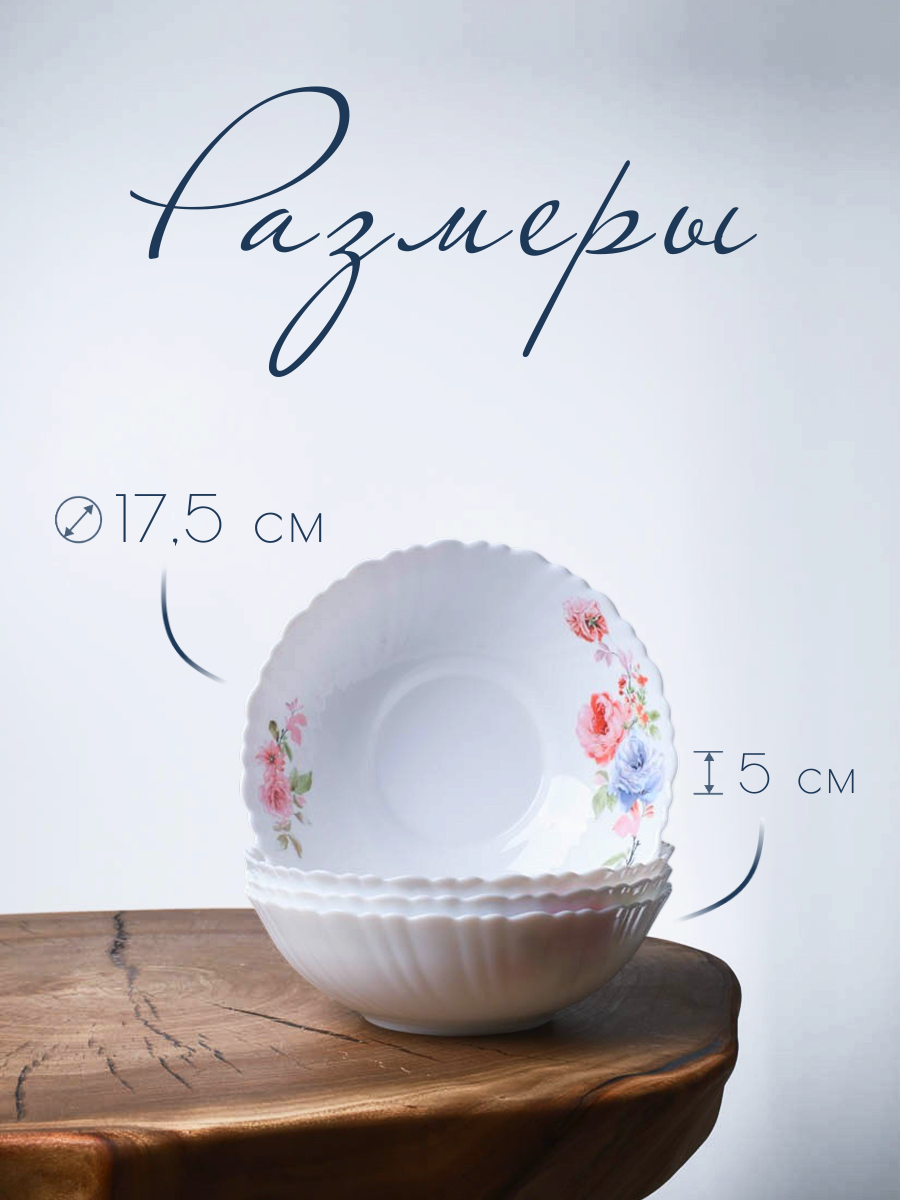 10 цен на Тарелка суповая глубокая 650 мл -4штуки, салатник "Синяя роза"