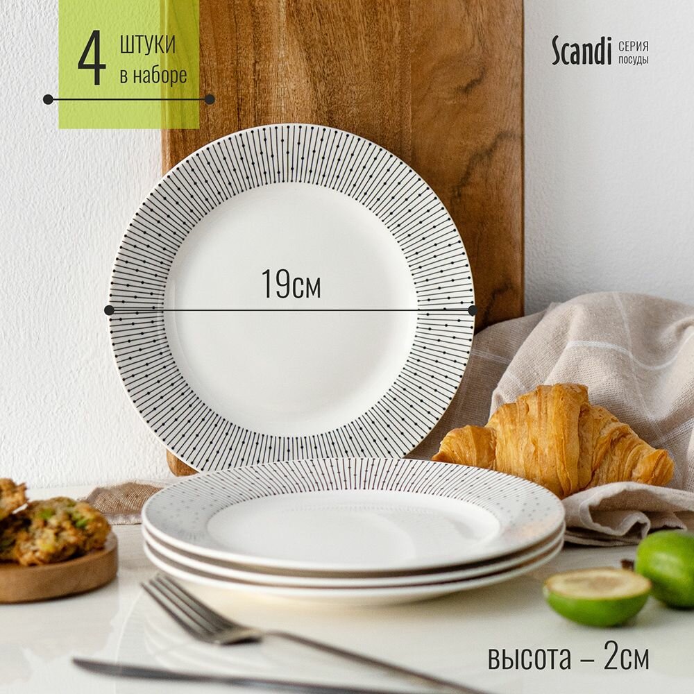 Тарелки набор 4 шт. тарелка десертная мелкая 19 см фарфор Scandi информация: