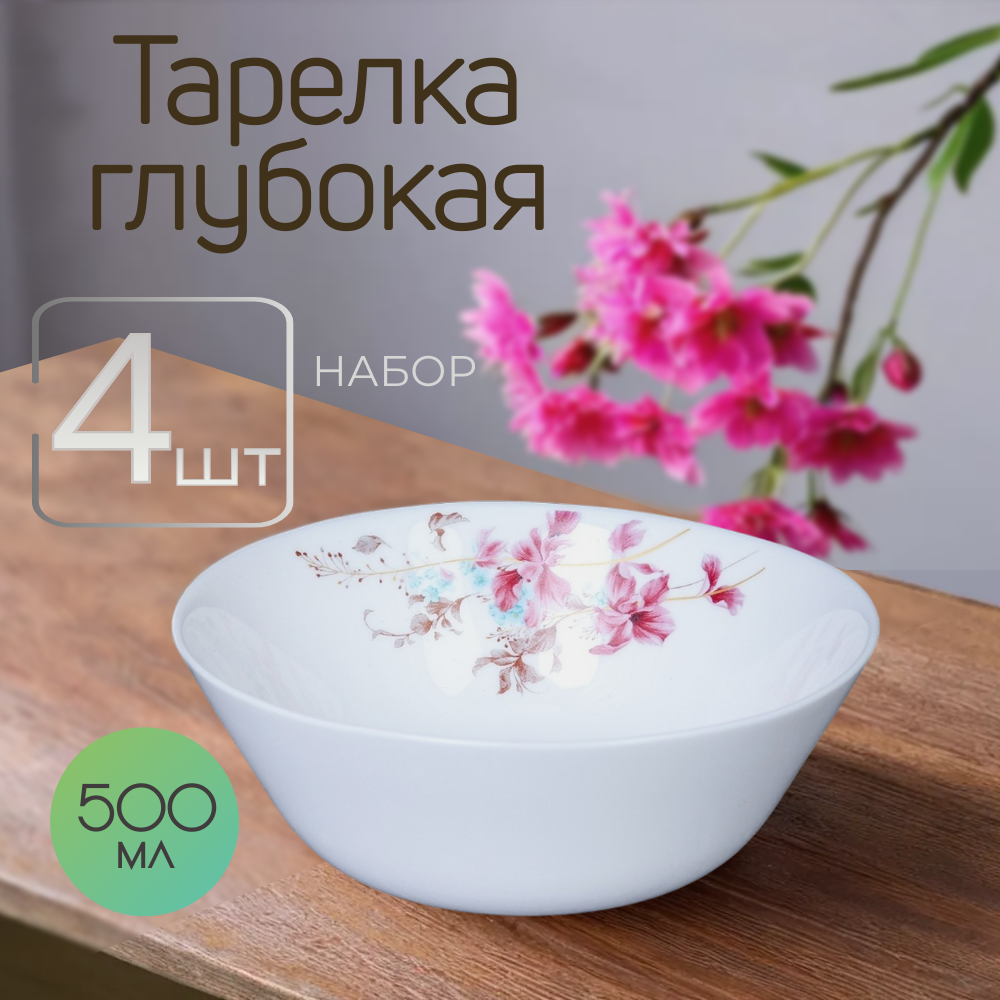 Тарелка глубокая 600 мл 170 мм Олеандр 4 штуки для супа 780 ₽