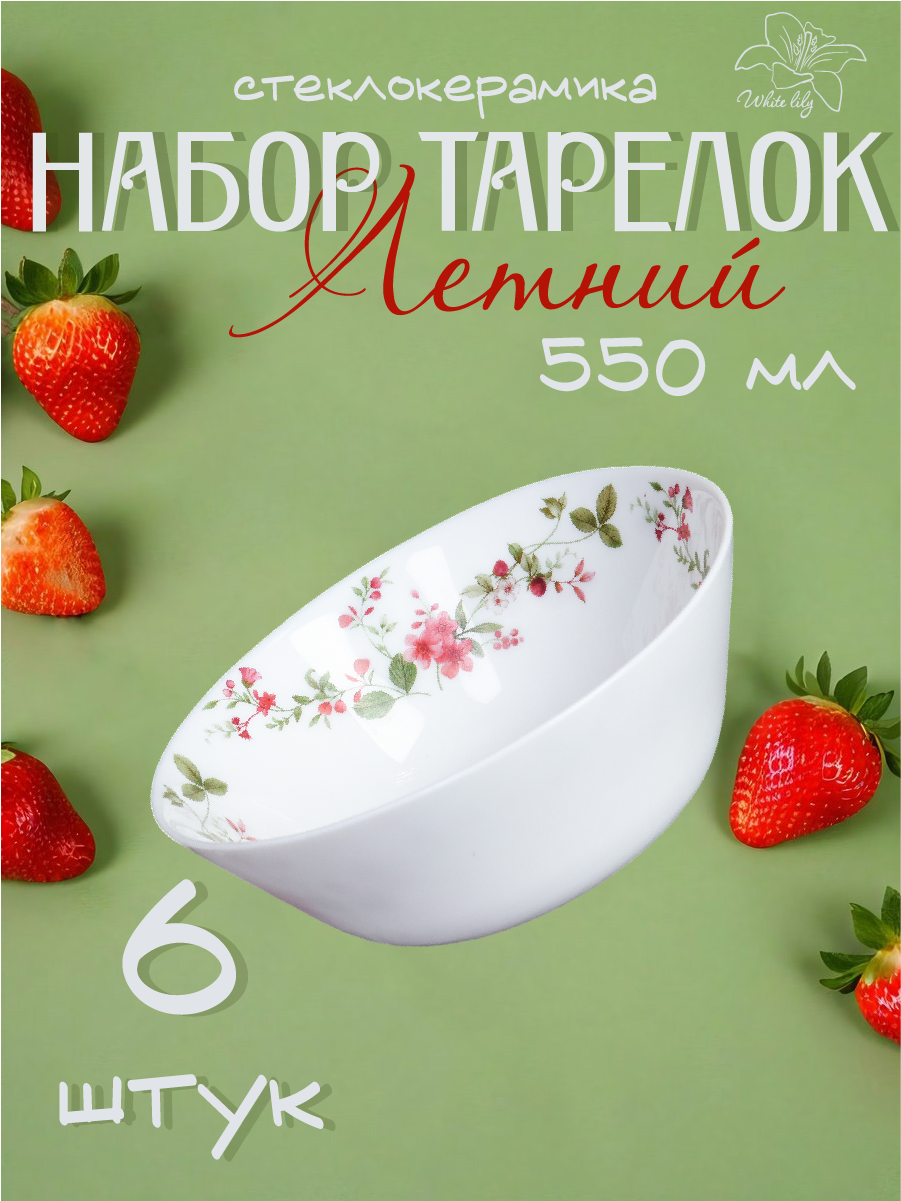 Набор тарелок глубоких "Летний", суповых, 550мл, 6 штук в комплекте информация: