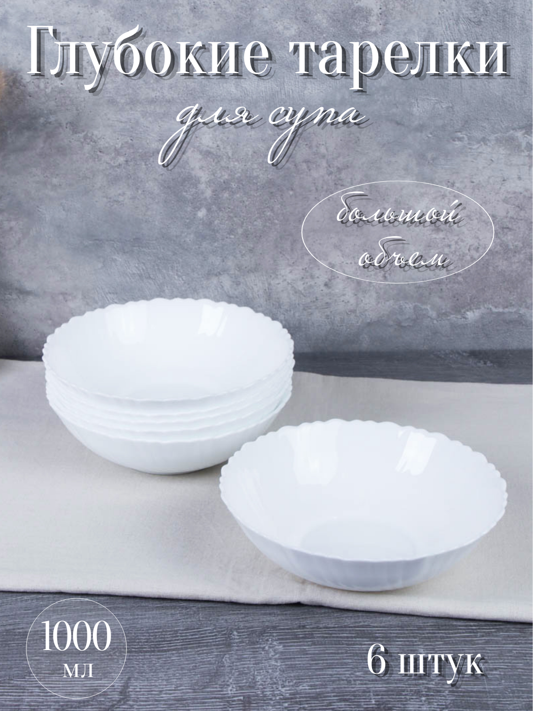 Суповые тарелки 1000 мл "Белые" 6 штук информация: