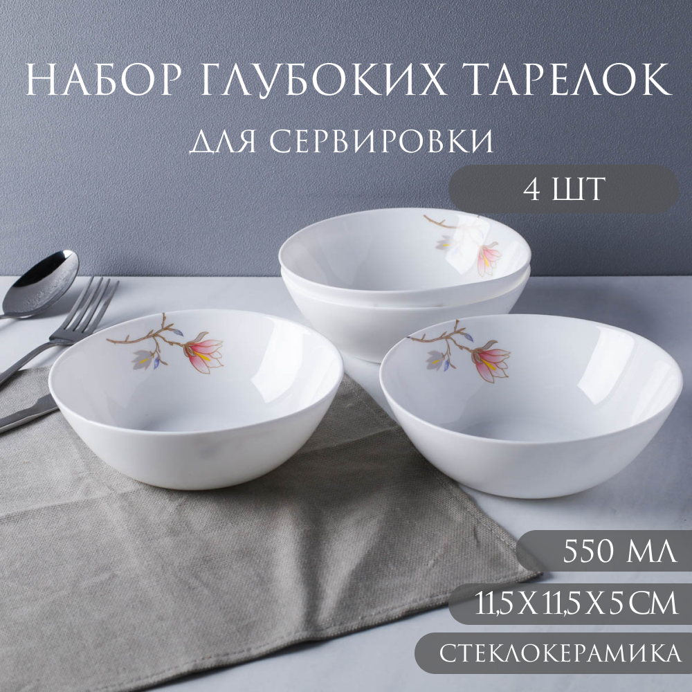 10 цен на Набор салатников "Магнолия" 600 мл для сервировки стола 4 шт/ Столовый сервиз 15 см