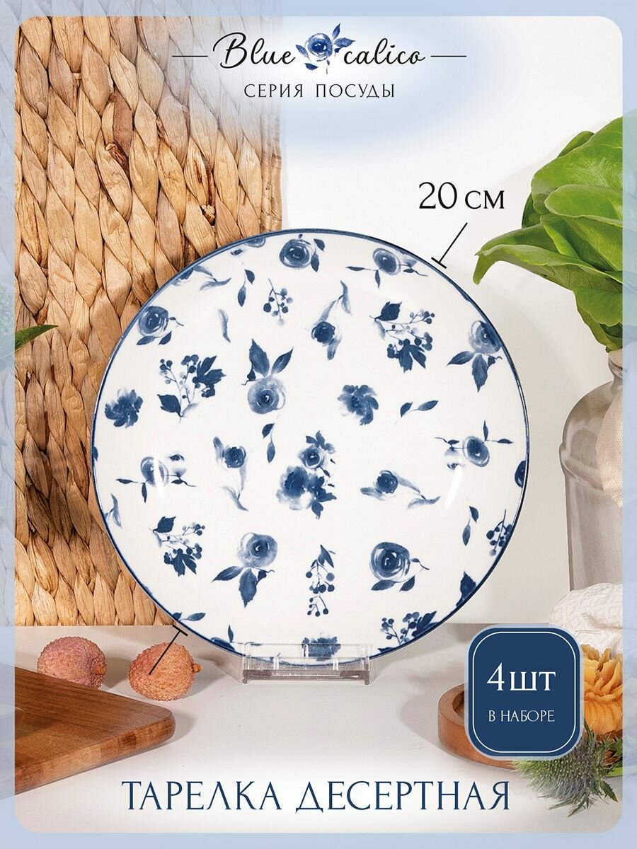 10 цен на Набор тарелок фарфор 20 см 4 шт. "Blue calico" набор посуды тарелки десертные столовые закусочные