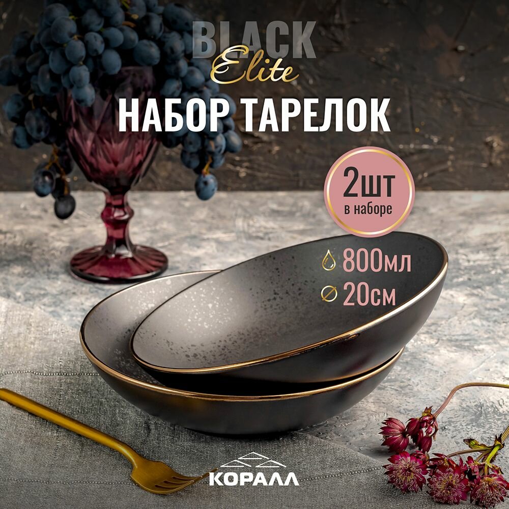 Набор керамических глубоких тарелок Elite Black, 2 штуки, объем 800 мл, диаметр 20 см информация: