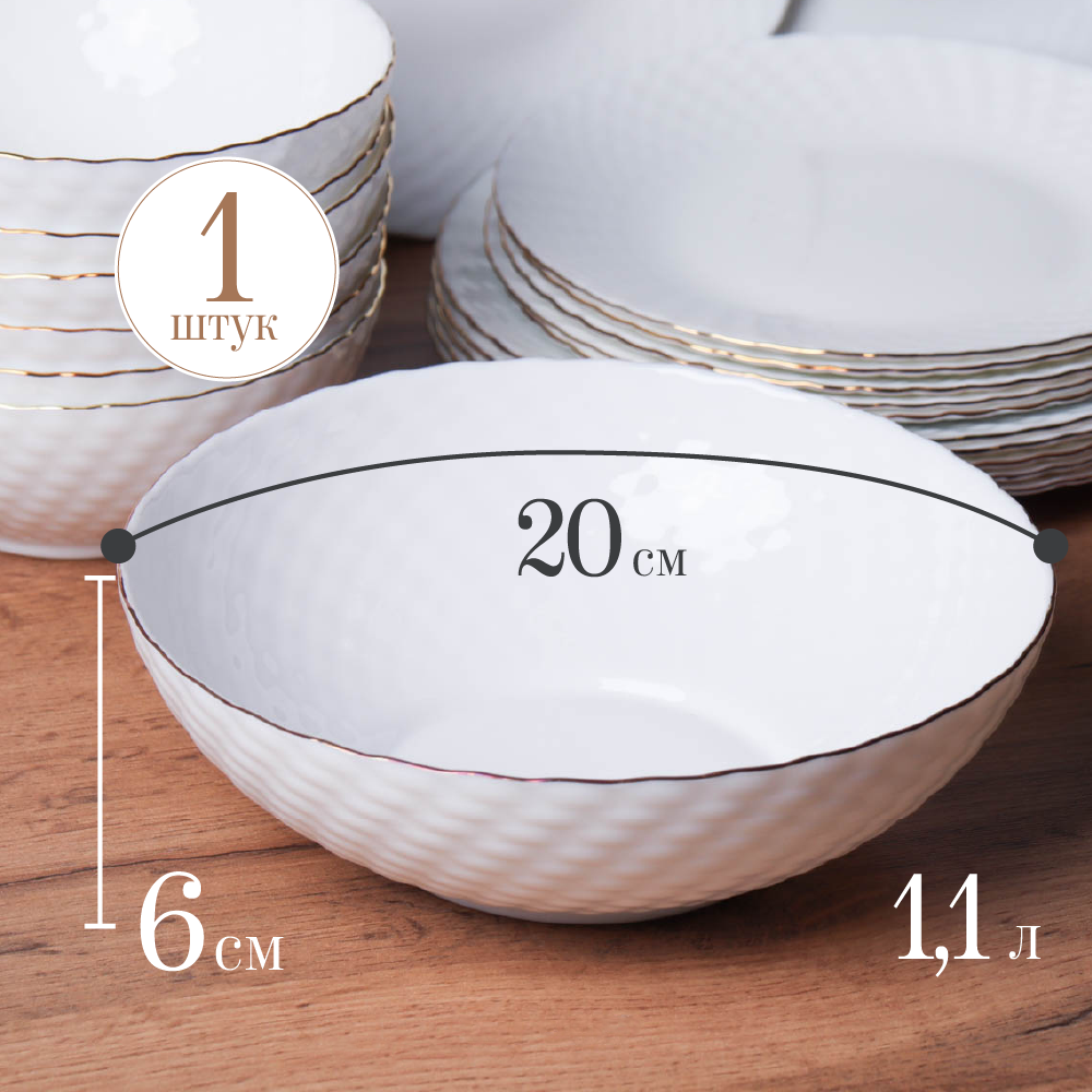 Набор тарелок 600 мл Белые с золотом/ салатник глубокий 6 шт Фактурные белые 1 620 ₽