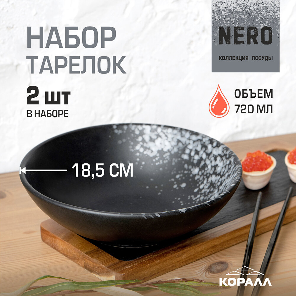 Отзывы на Тарелки набор Nero 2шт. 720мл/18.5 см керамическая тарелка глубокая суповая