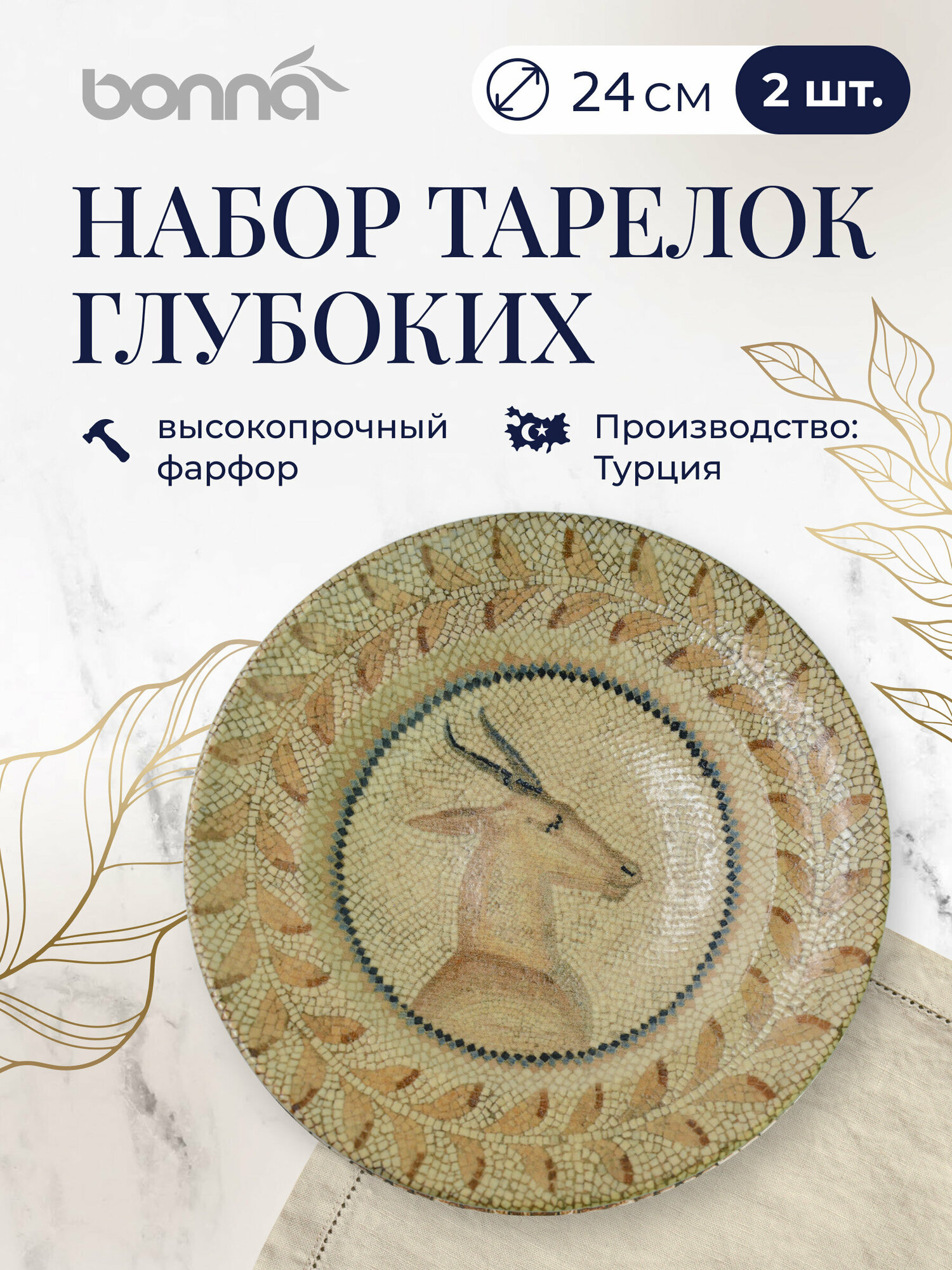 Набор тарелок глубоких 2 штуки, серия Mesopotamia, диаметр 24 см, 400мл, фарфор, цвет бежевый, Bonna информация: