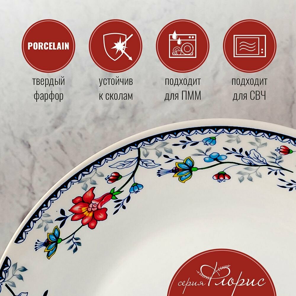 Набор тарелок фарфор 20,5 см 6 шт. "Флорис" набор посуды тарелки десертные столовые закусочные 1 636 ₽