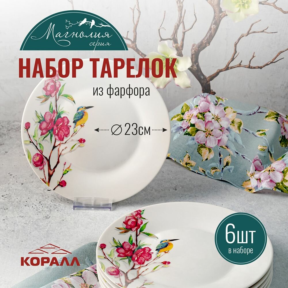 10 цен на Набор обеденных тарелок фарфор 23 см 6 шт. набор посуды тарелки "Магнолия"