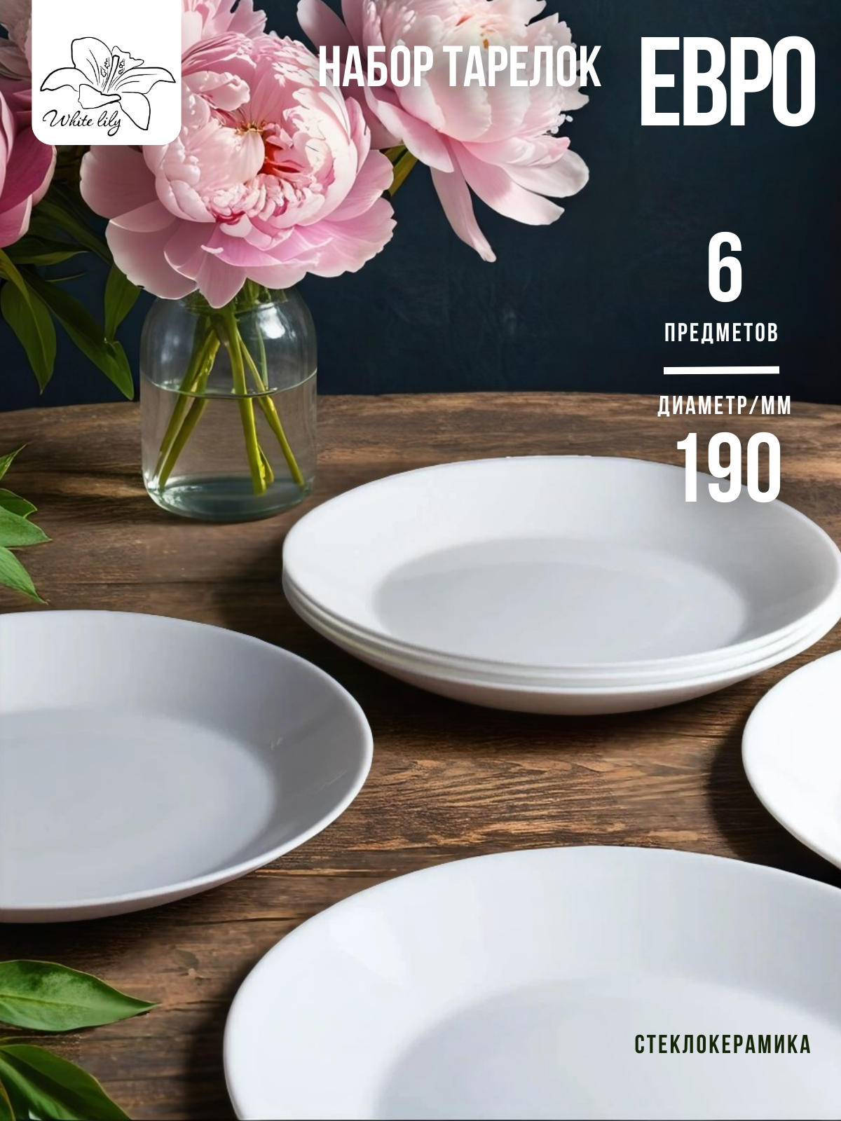 Набор универсальных тарелок 19 см "Евро" от бренда "White Lily" - 6 штук информация:
