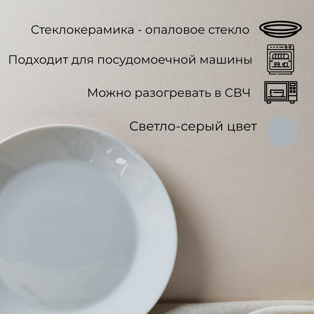 Набор тарелок 25см 4 штуки больших широких Светло-серые стеклокерамика информация: