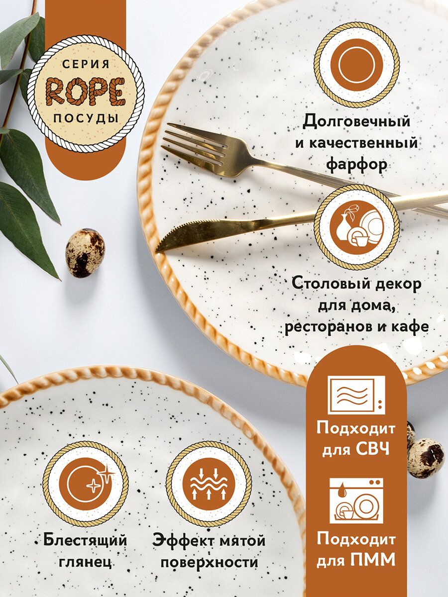 Тарелки набор из 2 шт. фарфор с декором 20 см. "Rope" универсальная с бортом 450 мл. 1 676 ₽