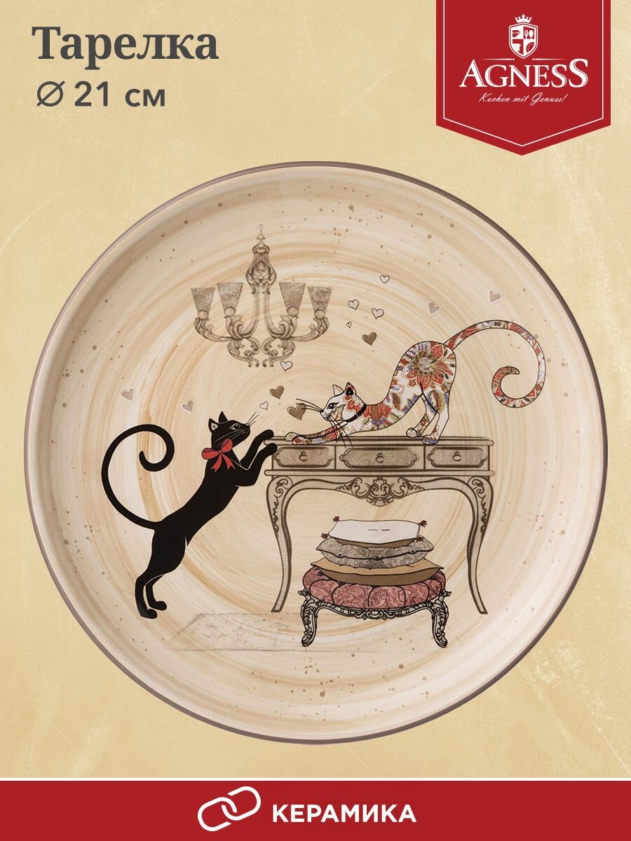 Тарелка Agness "Парижские коты", закусочная, 1 шт, керамическая, 21 см информация:
