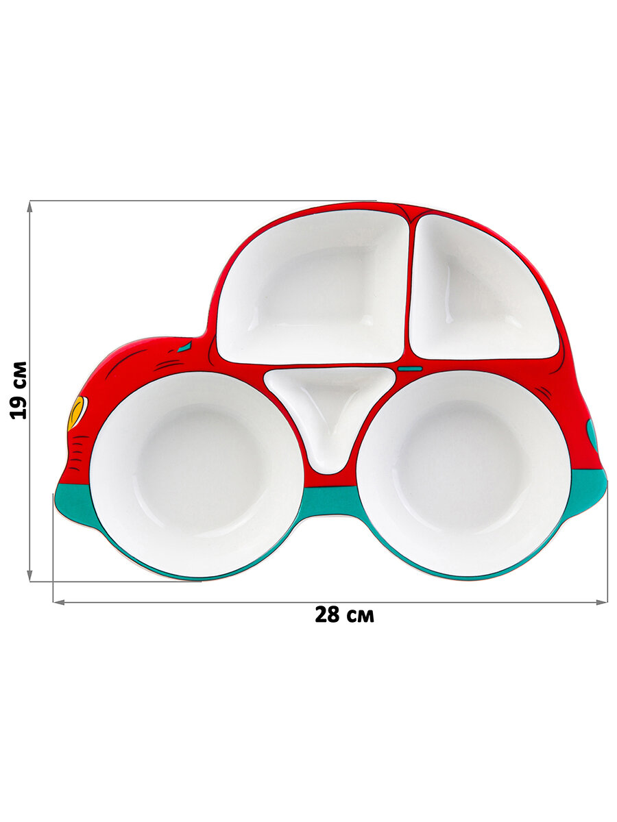Тарелка сервировочная 28*19*3,6 см "Машина" 5 секций красно-голубая информация:
