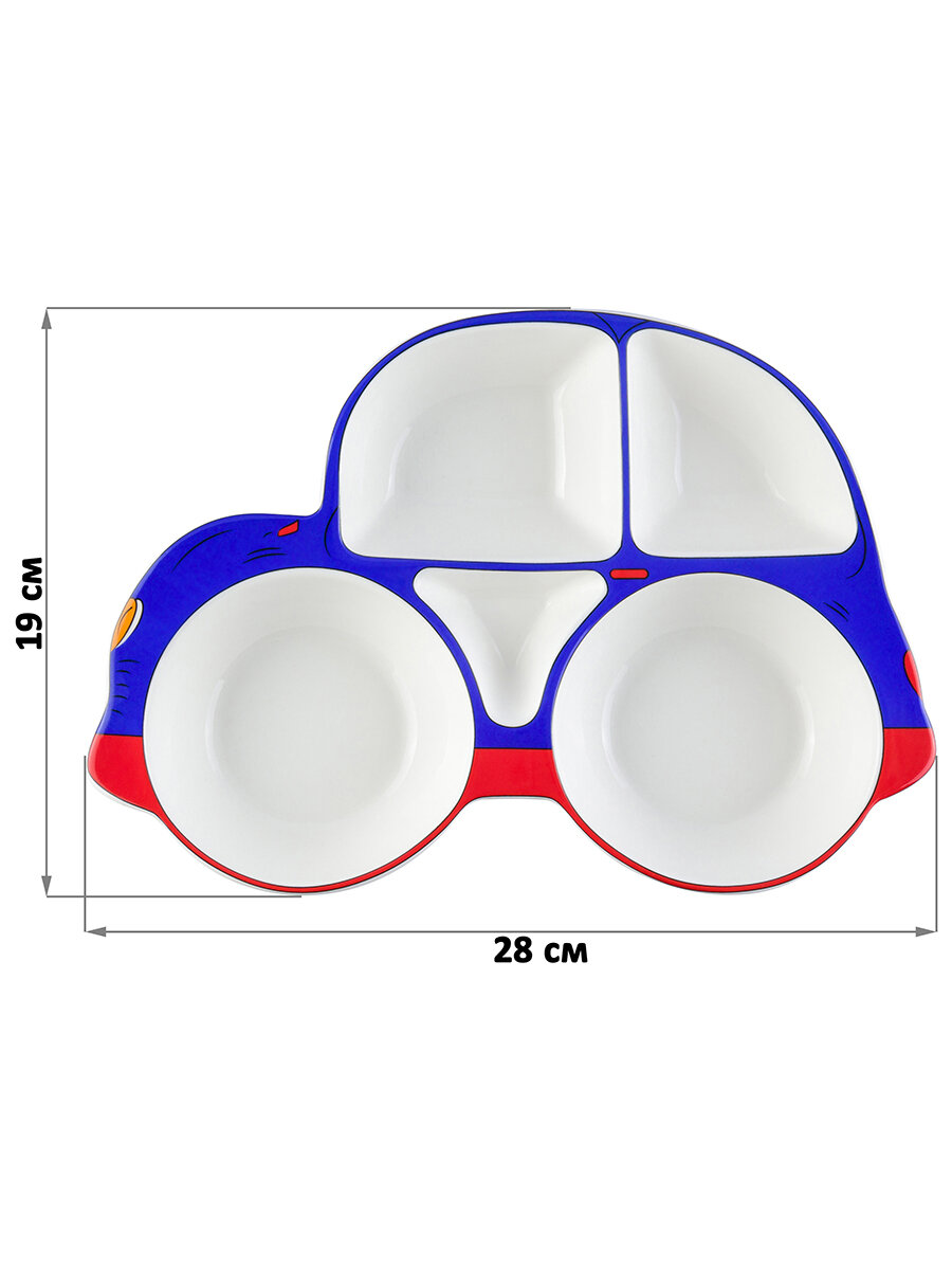 Тарелка сервировочная 28*19*3,6 см "Машина" 5 секций сине-красная информация: