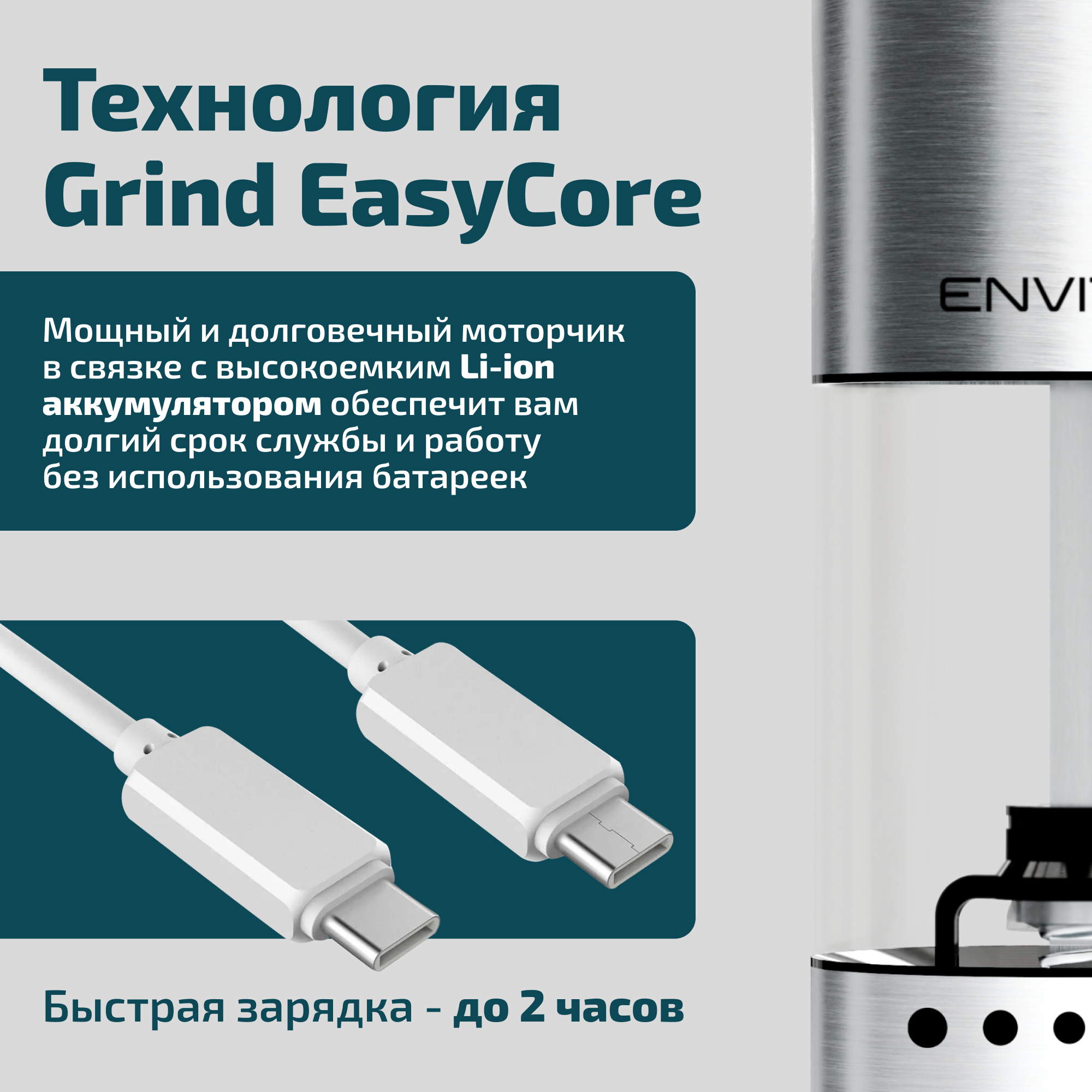 Электрическая мельница EnviTec, для специй, металл, стекло, пластик, серебристая 3 350 ₽