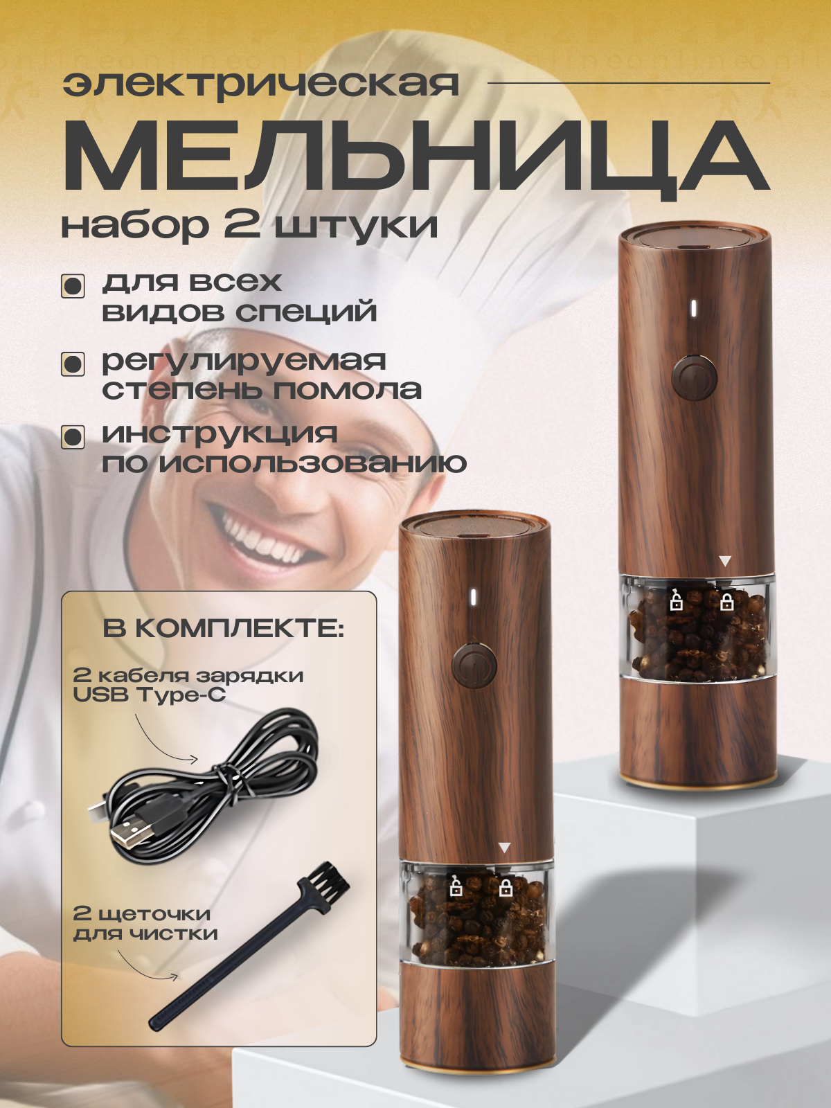 10 цен на Мельница для специй, керамические жернова, электрическая, регулировка помола. 2шт. Цвет Под дерево