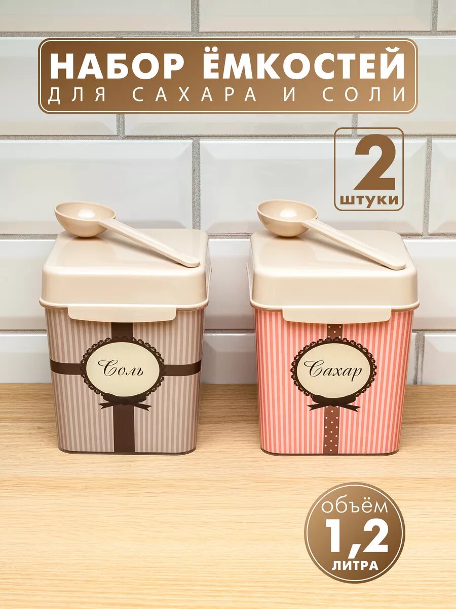 10 цен на Набор емкостей, банок для специй, сахара и соли, с ложкой, 1,2 литра, 2 шт