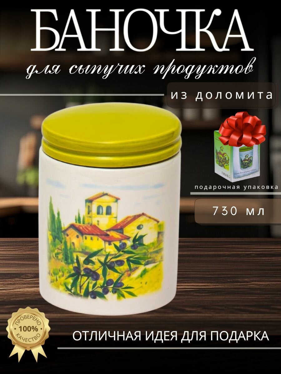 Банка для сыпучих продуктов Elrington "Итальянский Дворик", доломит, 730мл, с крышкой информация: