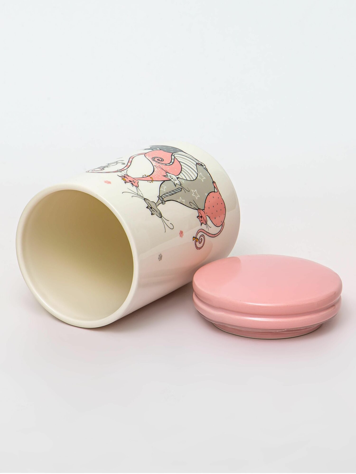 Банка Elrington "Кошки", для сыпучих, доломит, 850 мл, с крышкой, белая/светло-серая/розовая информация: