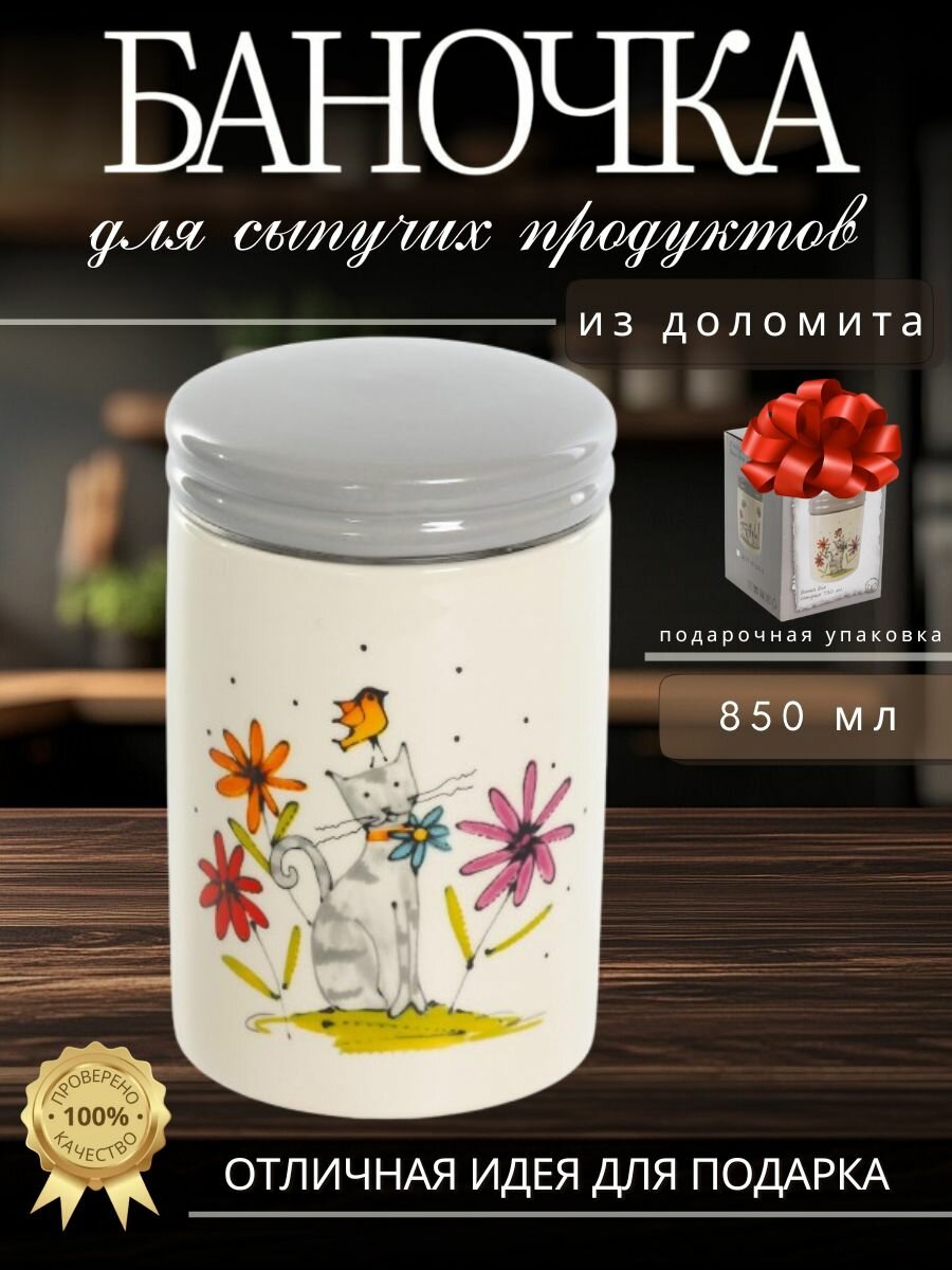 Банка для сыпучих продуктов Elrington "Серый кот", керамика, 850 мл информация: