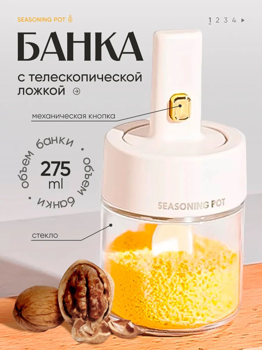 Отзывы на Баночка для специй "DERAMO", герметичная, с телескопической ложечкой, 275 мл, бежевая