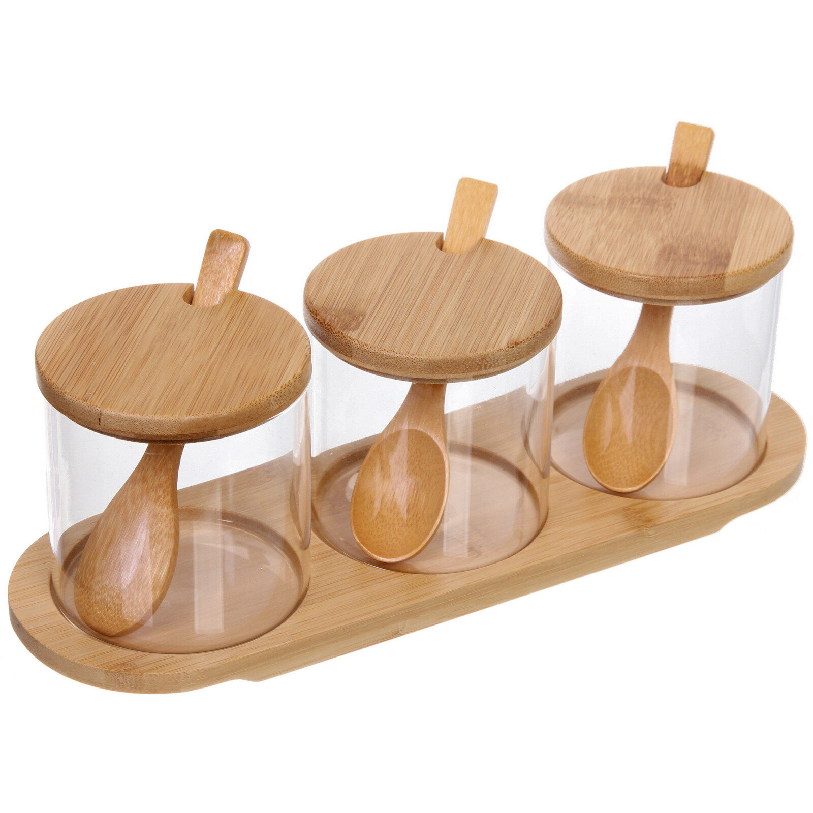 10 цен на Баночки для специй 300 мл, набор 3 шт на бамбуковой подставке