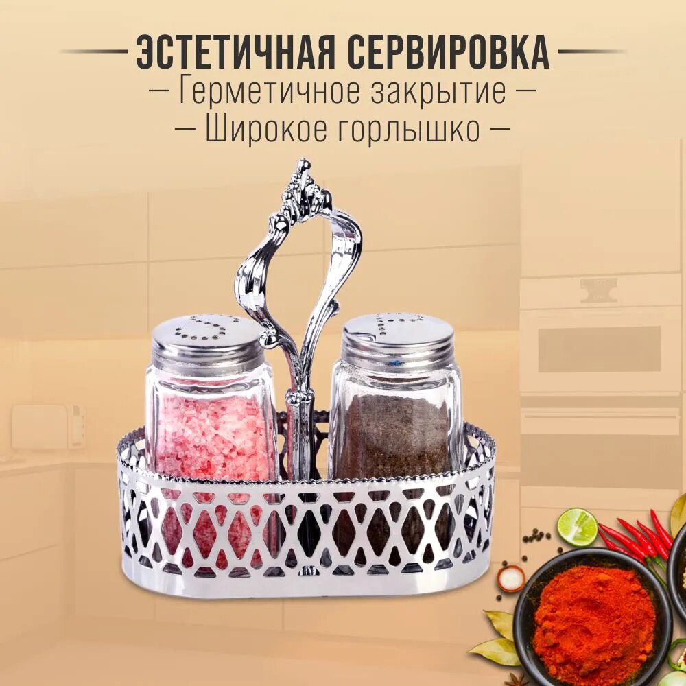 10 цен на Набор для специй 2 предмета х 40 мл. на подставке стекло, нержавеющая сталь