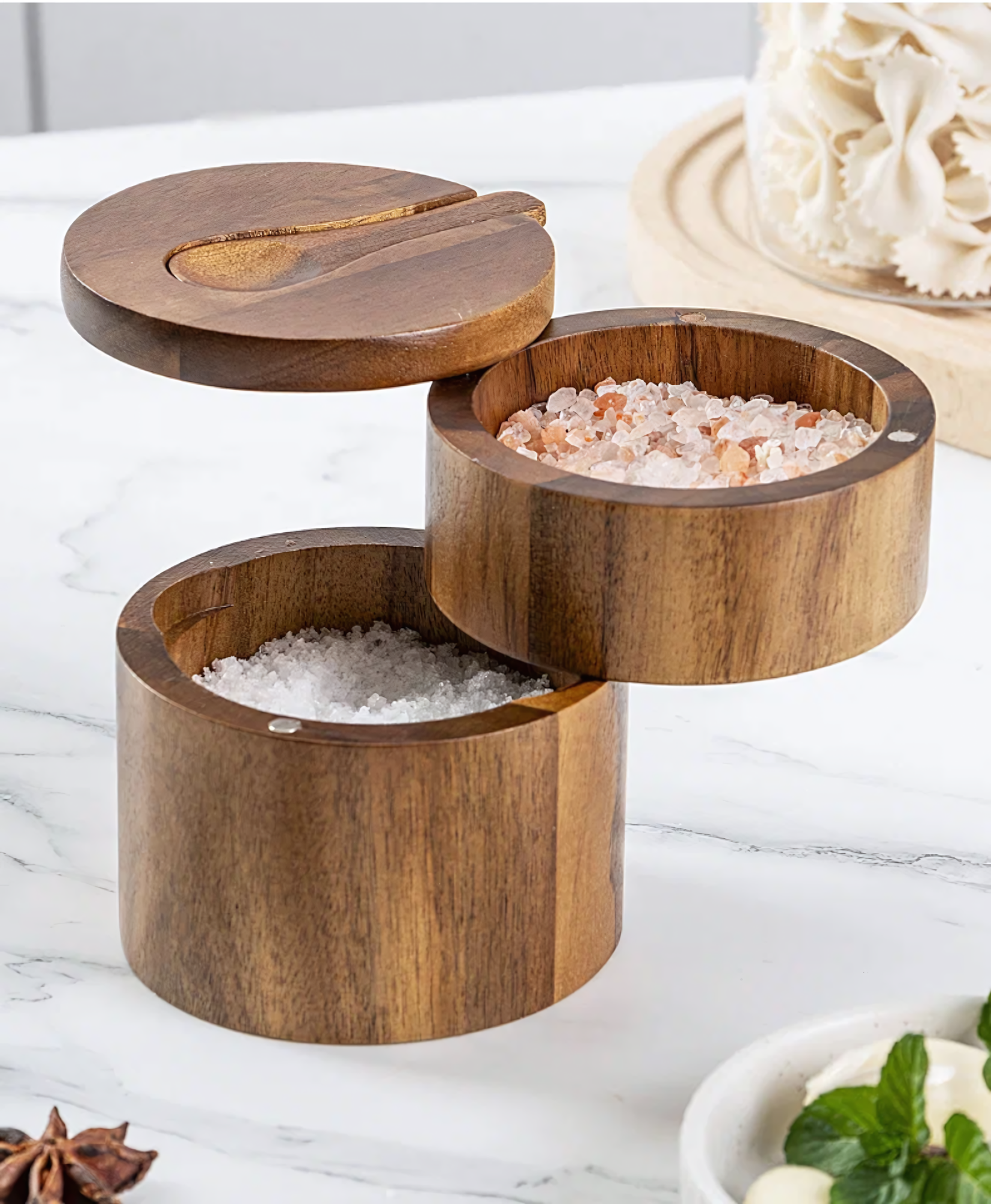 Отзывы на Емкость для специй двойная из дерева акации, 10.5х9 см, поворотный механизм