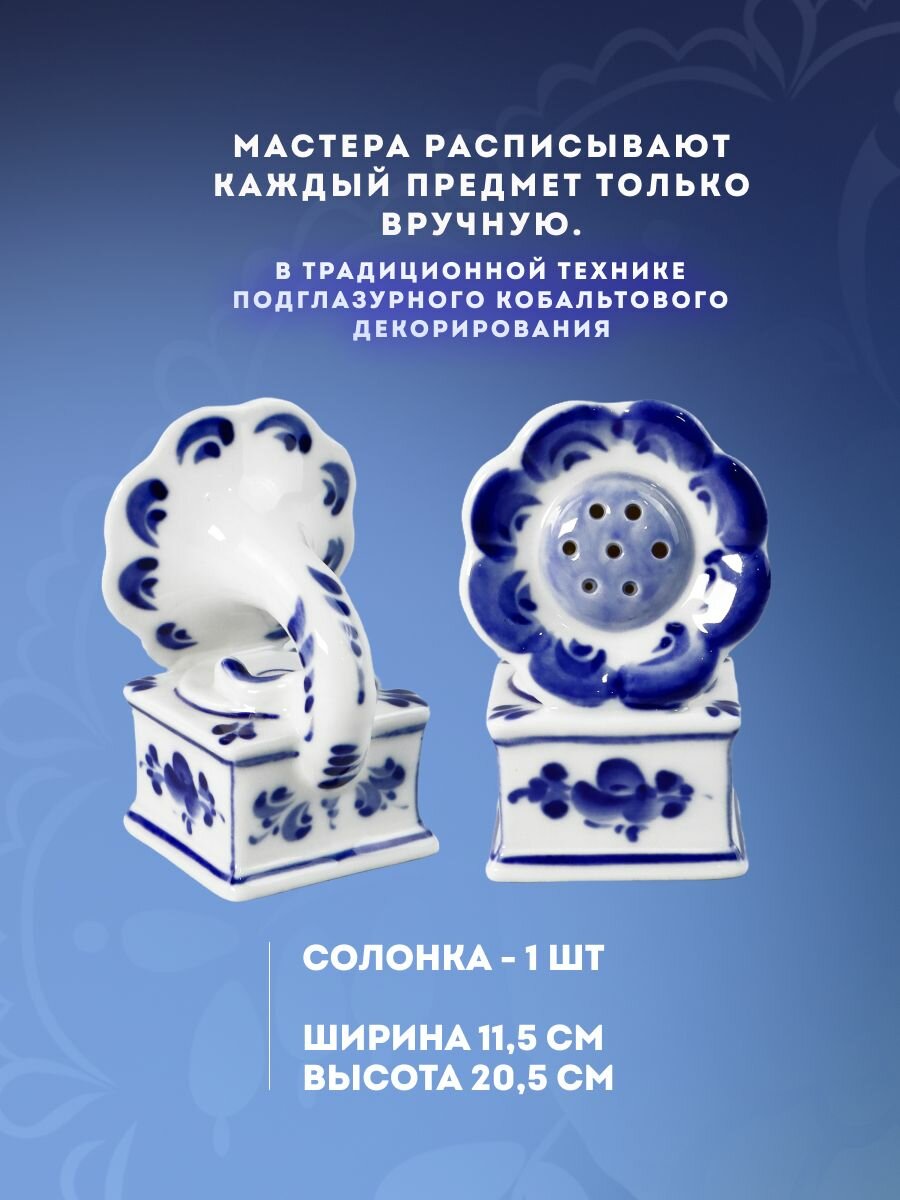 10 цен на Солонка "Граммофон", высота 8 см. Ручная роспись. Фарфор. Галактика г. Гжель